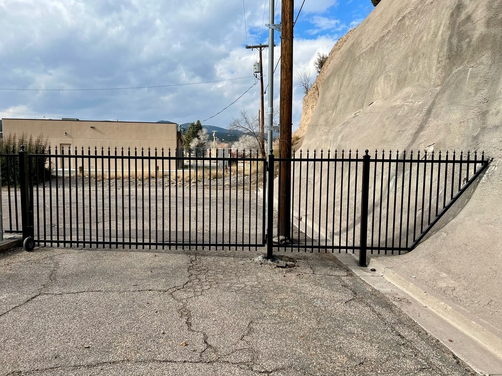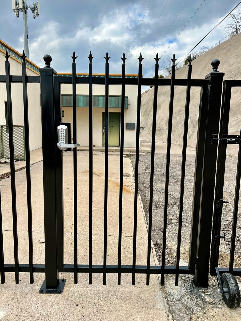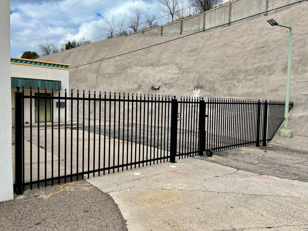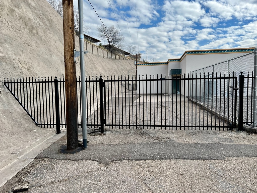 Steel fencing done for a local business with key pad for employee entrance in the back, done in Silver City, NM.