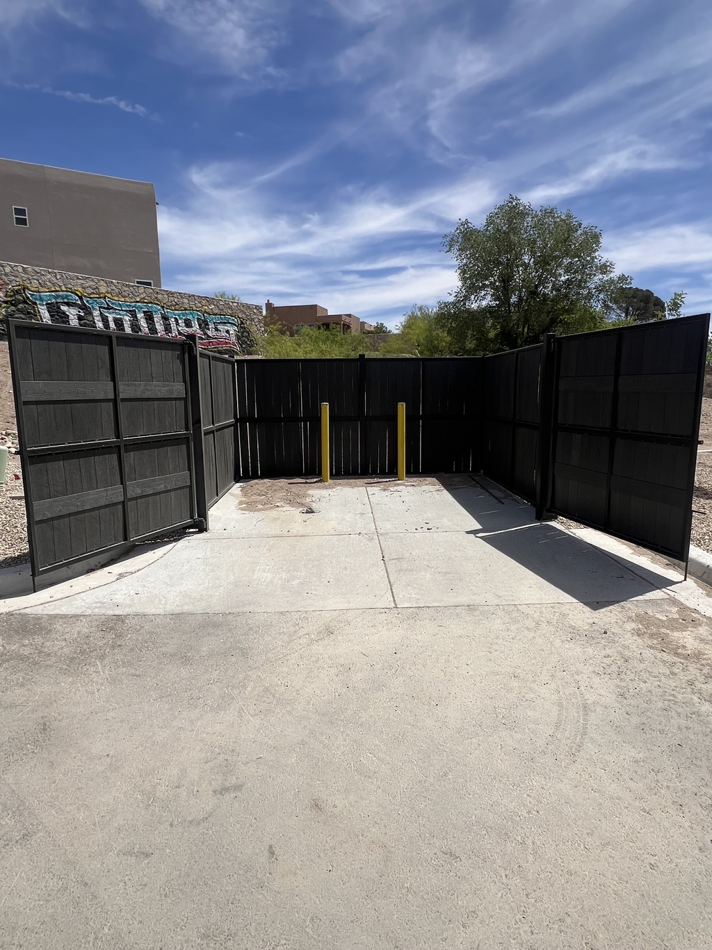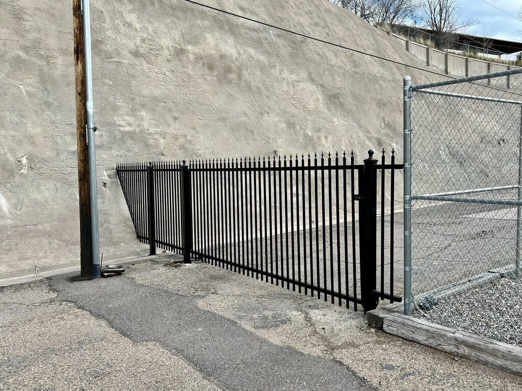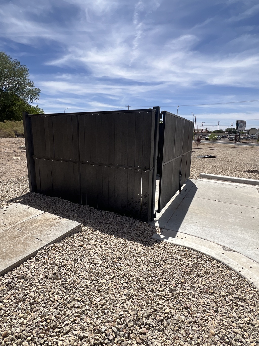 Steel fencing done for a local business with key pad for employee entrance in the back, done in Silver City, NM.