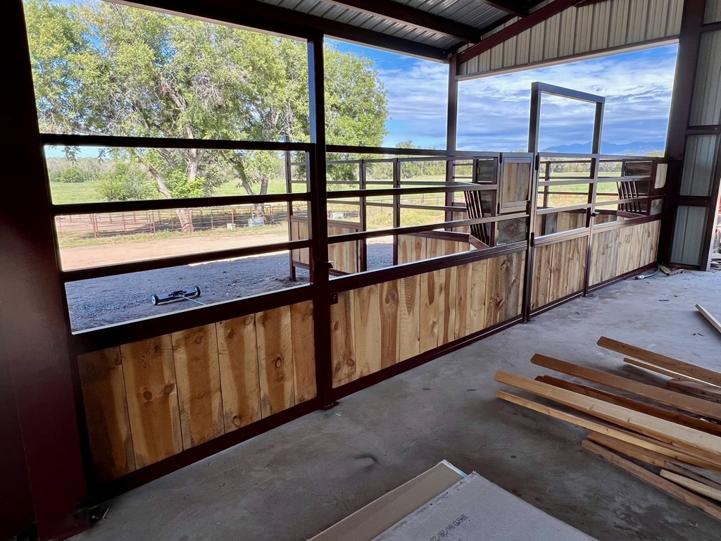 Wood/Steel horse stalls to include feed bins and gates done in Gila, NM.
