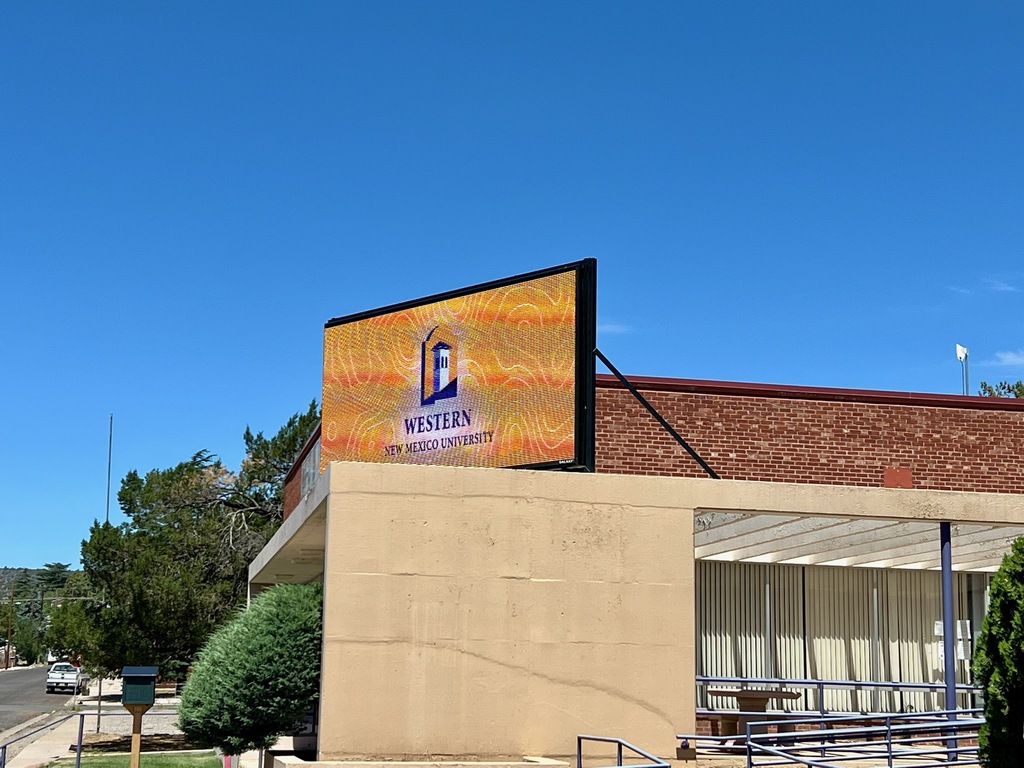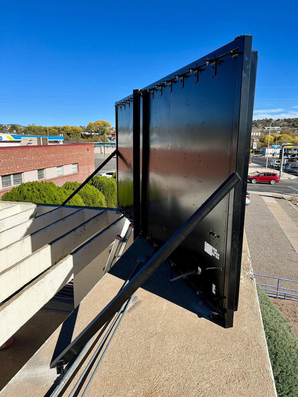 Stand with supports made for a digital billboard on top of a building done for Western New Mexico University in Silver City, NM.