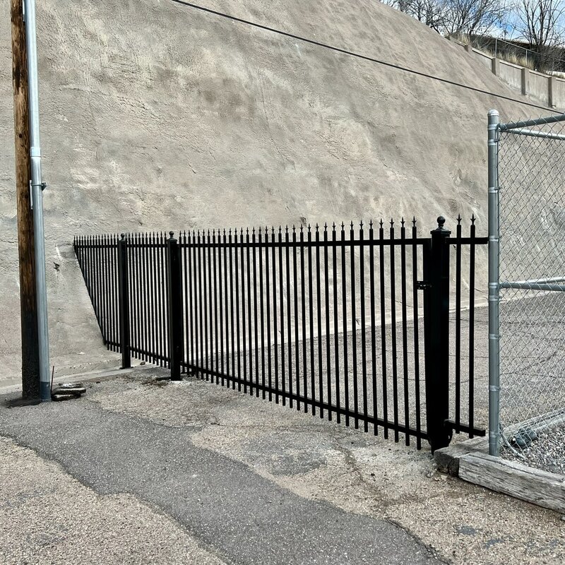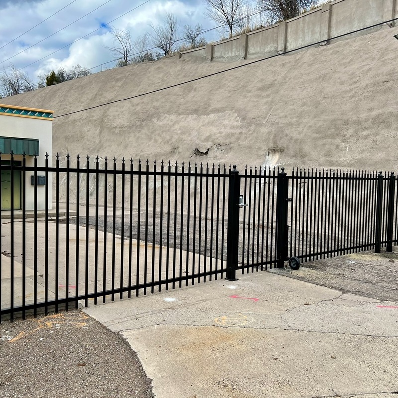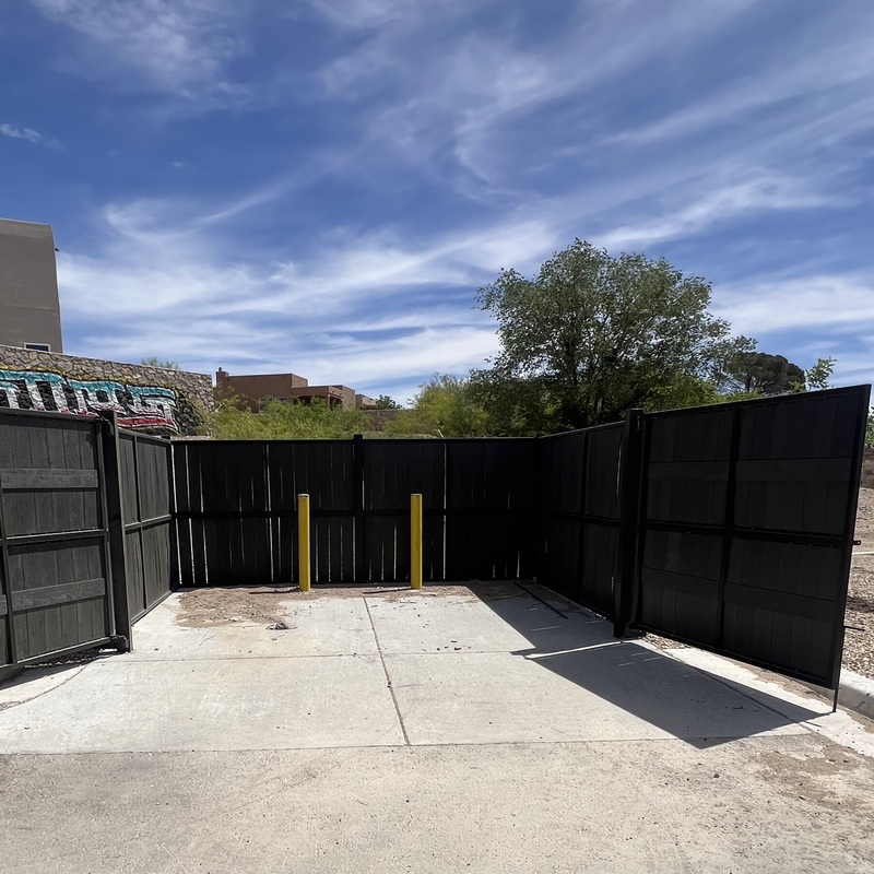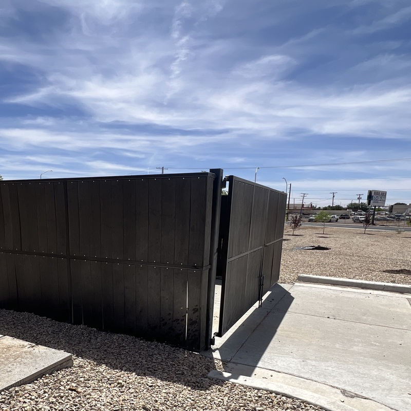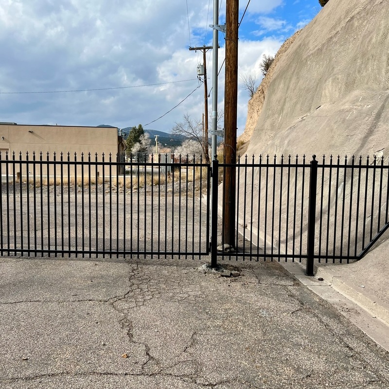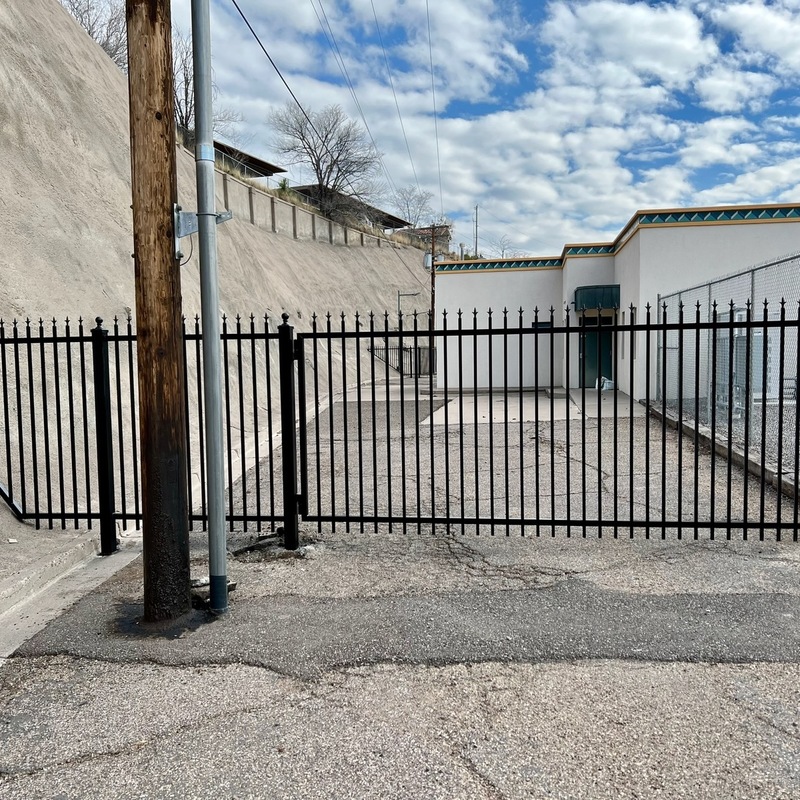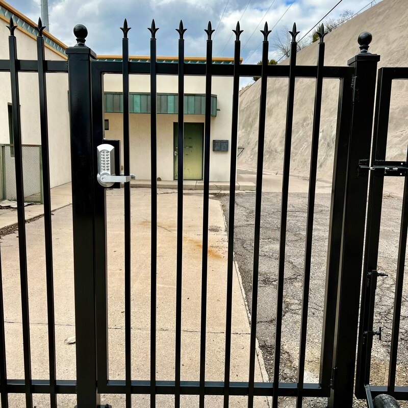 Steel fencing done for a local business with key pad for employee entrance in the back, done in Silver City, NM.