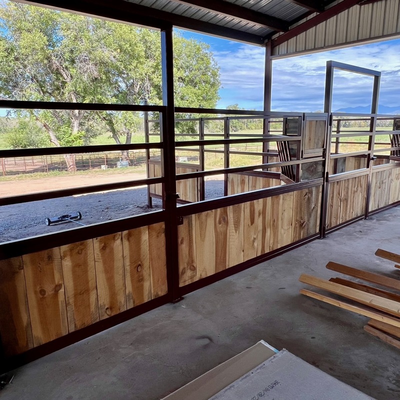 Wood/Steel horse stalls to include feed bins and gates done in Gila, NM.