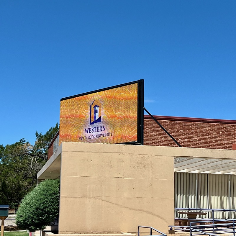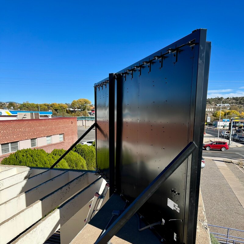 Stand with supports made for a digital billboard on top of a building done for Western New Mexico University in Silver City, NM.